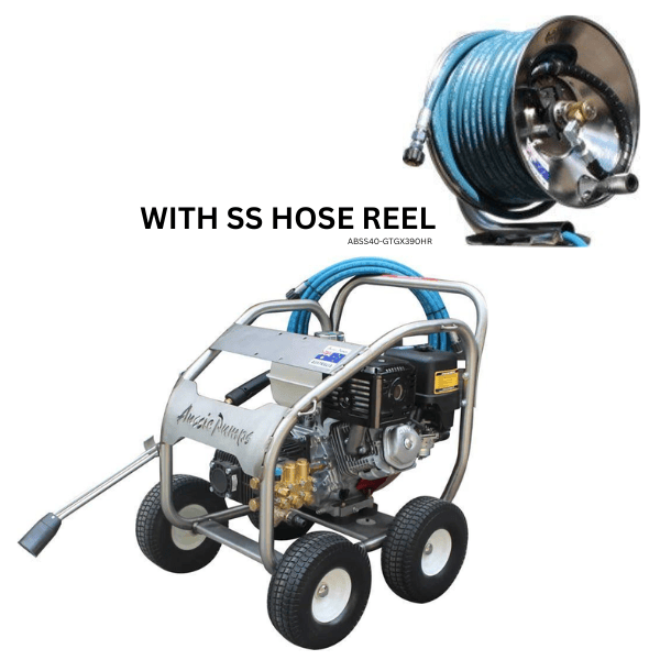 Aussie Pumps AB40 GT Petrol Pressure Washer, Honda powered, is compact, mobile and ideal for commercial applications including property cleaning, vehicle and plant wash down, and cleaning farm equipment.